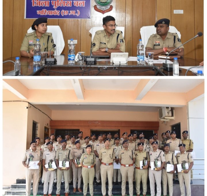 गरियाबंद। पुलिस अधीक्षक कार्यालय के सभा कक्ष में पुलिस अधीक्षक निखिल राखेचा , अति0 पुलिस अधीक्षक जितेन्द्र चंद्राकर, एस.डी.ओ.पी. गरियाबंद निशा सिन्हा की उपस्थिति में राजिम कुम्भ कल्प मेला एवं नगरीय निकाय, त्रि-स्तरीय पंचायत चुनाव में कड़ी मेहनत एवं लगन के साथ ड्यूटी कार्य करने वाले अधिकारी/कर्मचारियों को पुरस्कृत किया गया।