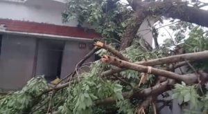 जिससे किसी को चोट नहीं आई पर घर पर पेड़ गिरने से घर पर बनी दीवाल टूटा है।