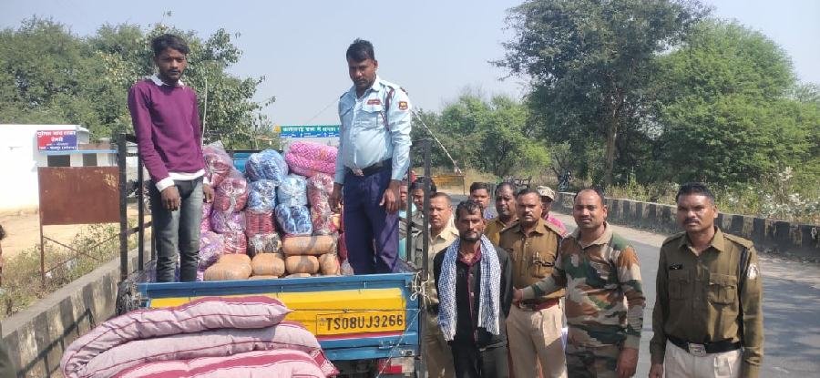 टेमरी नाका में चेकिंग के दौरान लगे पुलिस बल को देखकर एक नीले रंग की टाटा इंट्रा वाहन क्रमांक TS 08 UJ 3266 का चालक गाड़ी को छोड़कर भागने लगा। जिसे खेतों में जाकर घेराबंदी कर 01 व्यक्ति को पकड़ा गया।