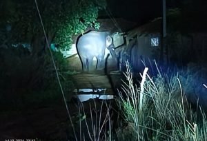 गरियाबंद: ग्रामीणों के द्वारा रखे हुए उनके धान एवं चावल को भी खा गया और तो और बीती रात सांकरा वा तौरंगा ग्राम के बीच में स्थित एक राइस मिल के दरवाजा पर भी तोड़ने का कोशिश किया दंतैल हाथी, बार-बार चिल्लाने एवं भगाने की वजह से हालांकि राइस मिल के दरवाजा को तोड़ने में सफल नहीं हुआ। जिसका वीडियो राइस मिल के संचालकों ने ऊपर छत से बनाया था जो इन दिनों आंचल में वायरल हो रहा है।