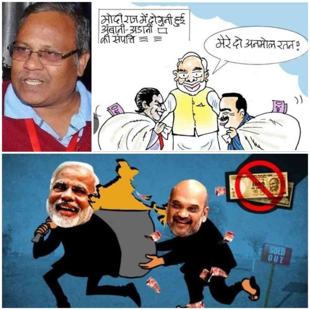 छत्तीसगढ़ । भाजपा का “चाल, चेहरा और चरित्र” स्पष्ट है। विश्व की कथित रूप से सबसे बड़ी पार्टी और उसकी मातृ संस्था आरएसएस वास्तव में विश्व की सबसे अमीर पार्टी और संस्था है, तो यह अब कोई रहस्य नहीं है। यह अमीरी इस पार्टी के कार्यकर्ताओं और आम जनता के दान पर नहीं, बल्कि आम जनता और देश के संसाधनों की लूट पर टिकी हुई है। इस लूट से कॉरपोरेट, विशेषकर मोदी के प्रिय पात्र अडानी और अंबानी, मालामाल हुए हैं। इतने मालामाल हुए हैं कि इन दस सालों में दुनिया के सबसे बड़े धन पिशाचों की लाइन में खड़े हो गए हैं, तो उन्हें उपकृत करने वाला संघ-भाजपा भी दुनिया की सबसे अमीर संस्था और राजनैतिक दल बन गए हैं। एक गरीब देश की इतनी बेरहम और बेशर्म लूट शायद अंग्रेजों के समय भी न हुई हो।