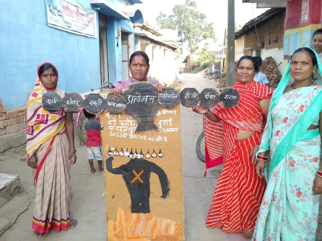 मतदाता जागरूकता के तहत लोगों ने प्रलोभन रूपी रावण का दहन कर लालच मुक्त होकर मतदान करने का दिया संदेश