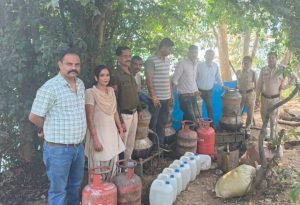 जिला आबकारी टीम गरियाबंद द्वारा ग्राम बरेठिन कोना , पैरी नदी किनारे जंगल 2 गैस भट्टी, महुआ लाहन लगभग 5000kg तथा अवैध हाथभट्टी कच्ची मदिरा 210 बल्क लीटर बरामद