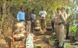 गरियाबंद। मदिरा विनिर्माण की सूचना पर सघन पतासाजी कर संयुक्त कार्रवाही करने पर जंगल में अलग अलग जगहों पर मदिरा विनिर्माण हेतु प्रयुक्त 2 गैस भट्टी, महुआ लाहन लगभग 5000kg तथा अवैध हाथभट्टी कच्ची मदिरा 210 बल्क लीटर बरामद किया गया जिसमें उड़नदस्ता रायपुर द्वारा 1 तथा गरियाबंद आबकारी टीम जिला गरियाबंद द्वारा 1 प्रकरण कायम किया गया। जिला कलेक्टर गरियाबंद दीपक अग्रवाल के दिशा निर्देशन पर जिला आबकारी अधिकारी रघुवरसिंह राठौर एवं जिला आबकारी अधिकारी मुकेश कुमार अग्रवाल के मार्गदर्शन में संभागीय उड़नदस्ता रायपुर एवं आबकारी वृत्त गरियाबंद अंतर्गत छ०ग० रायपुर संभागीय उड़नदस्ता और गरियाबंद आबकारी टीम द्वारा ग्राम बरेठिन कोना पैरी नदी किनारे सघन गश्त( संयुक्त कार्यवाही) किया गया जहां पर लावारिस अवस्था में 2 गैस भट्टी, महुआ लाहन की मात्रा लगभग 5000 kg जिनका बाजार मूल्य 250000/- एवं 210 लीटर अवैध हाथ भट्टी कच्ची महुआ शराब जिनका बाजार मूल्य तकरीबन 42000/- रु. जुमला 292000 ₹ कच्ची महुआ शराब और महुआ लाहन बरामद कर जप्ती कार्यवाही की गई ।