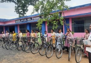 शाला प्रवोत्सव कार्यक्रम में किताब और साइकिल प्राप्त कर छात्र छात्राएं की चेहरे पर खिल उठी मुस्कान