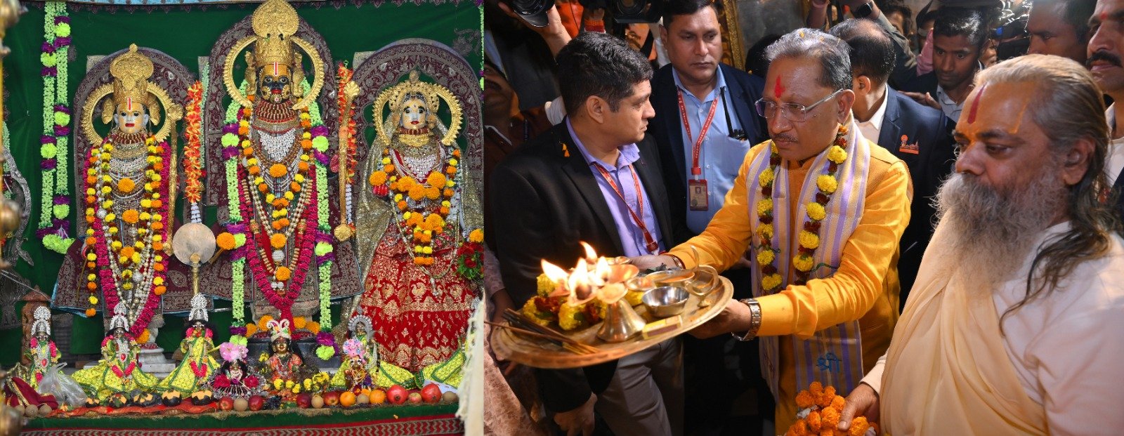 रायपुर। अयोध्या में हो रही श्री रामलला की प्राण-प्रतिष्ठा के अवसर पर मुख्यमंत्री श्री विष्णुदेव साय ने आज सवेरे राजधानी रायपुर स्थित दूधाधारी मठ पहुंचकर राम-दरबार का दर्शन किया। उन्होंने गौ माता की भी पूजा-अर्चना कर उन्हें भोग लगाया।
