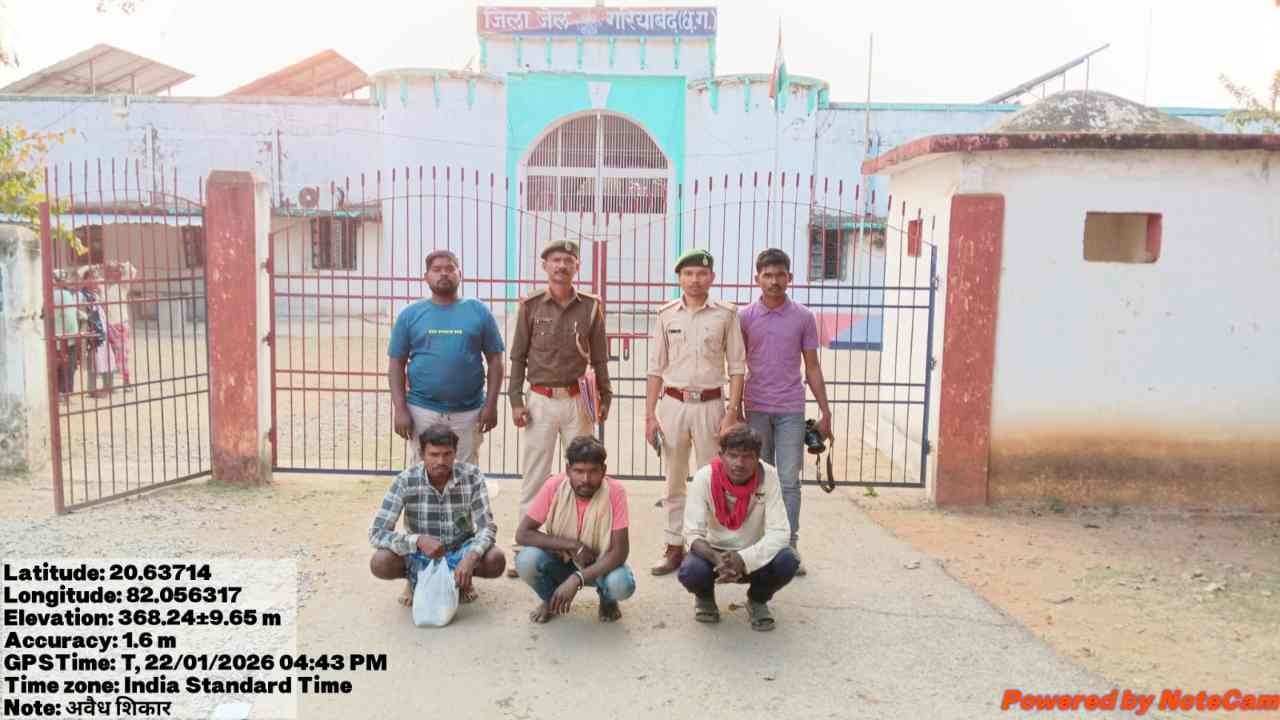 दिनांक 20.01.2026 को आरोपी गुप्ताराम को स्थानीय भूतबेड़ा बाजार से पकड़कर ग्राम टांगापानी उनके घर बाड़ी का तलाशी पत्रक जारी कर विधिवत तलाशी लिया गया। उनके घर से 01 नग भरमार बंदुक, जंगली सुअर का 3.100 कि.ग्रा. कच्चा मांस, भालु का पंजा, भरमार बंदुक बनाने का स्ट्रीगर (कलपुर्जा), लोहे का छर्रा, कुल्हाड़ी, हंसिया एवं अन्य सामाग्री जप्त किया गया। आरोपी भादुराम के घर एवं बाड़ी का तलाशी पत्रक जारी कर विधिवत तलाशी लिया गया। उनके घर एवं बाड़ी से खरगोश फंदा, क्लच वायर का फंदा, घूरी जप्त किया गया। संबंधित परिसर रक्षी के द्वारा उदंती सीतानदी टायगर रिजर्व गरियाबंद के कोर एरिया में अवैध शिकार के उद्देश्य से भरमार बंदुक लेकर अनाधिकृत प्रवेश करना, शिकार करने के तहत् अज्ञात पी.ओ.आर क्रमांक 51/09 दिनांक 15.01.2026 के तहत् वन अपराध पंजीबध्द किया गया। विवेचना अधिकारी श्री धर्मेन्द्र सिंह सोनवानी वनपाल, सहायक परिक्षेत्र अधिकारी कोयबा के द्वारा वन्यजीव (संरक्षण) अधिनियम 1972 की धारा 9,27,29,31,34 (3)50,51 के तहत् आरोपी गुप्ताराम व. फरसराम, जाति गोड़ उम्र 42 वर्ष, ग्राम टांगापानी, मादुराम पिता बीकोराम, जाति गोड़, उम्र 40 वर्ष, ग्राम गाजीमुड़ा, राजमन पिता कन्हैया, जाति रावत, उम्र 30 वर्ष, ग्राम टांगापानी, को गिरफ्तार कर दिनांक 22.01.2026 को मुख्य न्यायिक मजिस्ट्रेट गरियाबंद (छ.ग.) के समक्ष प्रस्तुत किया गया। माननीय मुख्य न्यायिक मजिस्ट्रेट गरियाबंद (छ.ग.) के आदेश अनुसार 13 दिन के रिमांड पर जिला जेल गरियाबंद दाखिल कराया गया।