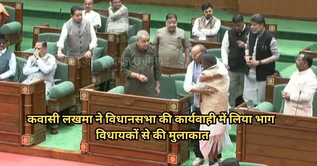 रायपुर : छत्तीसगढ़ विधानसभा के बजट सत्र के दौरान पूर्व आबकारी मंत्री कवासी लखमा भी सदन की कार्यवाही में शामिल हुए। विधानसभा अध्यक्ष डॉ. रमन सिंह की अनुमति मिलने के बाद वे सदन पहुंचे और पूर्व सीएम भूपेश बघेल के बगल में बैठे नजर आए। सदन पहुंचते ही कवासी लखमा का अलग ही दृश्य देखने को मिला। वे BJP नेताओं से गले मिलते दिखे।