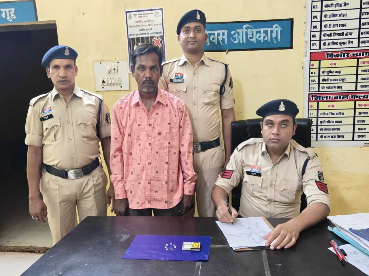 जिसके परिपालन में थाने एवं स्पेशल टीम को घटना स्थल रवाना किया गया। मुखबीर द्वारा बताये गये घटना स्थल ग्राम कुसियार बरछा कचना ध्रुवा मंदिर के पास एक व्यक्ति जो एक लाल काला रंग का मोटर सायकल एचएफ डिलक्स वाहन क्रमांक ओडी 24 एन 6802 में अपने पास अवैध रूप से बहुमुल्य हीरा जैसा चमकीला खनिज पदार्थ रखा कर ग्राहक के तलाश कर रहा था। पुलिस स्टाफ, गवाह तथा स्पेशल टीम के साथ मौका पहुच कर घेरा बंदी कर रेड कार्यवाही किया मौके पर आरोपी का नाम पता पूछने पर अपना नाम डमरू लाल लहरे पिता गोविंद राम लहरे उम्र 52 साल निवासी अधिकारिगुड़ा उमरकोट थाना उमरकोट जिला नवरंगपुर उड़ीसा का रहने वाला बताया। जिसके कब्जे से समक्ष गवाहन के कब्जे से 08 नग छोटे बडे चमकीले बहुमुल्य खनिज पदार्थ किमती 04 लाख रूपये एवं घटना में प्रयुक्त मोटर सायकल किमती 50 हजार जुमला किमती 04 लाख 50 हजार रूपयें को समक्ष गवाहन के विधिवत जप्त कर कब्जा पुलिस लिया। आरोपी का कृत्य अपराध धारा 303(2)बीएनएस 21(4) खान एवं खनिज (विकास का विनियमन) अधिनियम 1957 अपराध धारा सदर का पाये जाने से अपराध पंजीबद्ध कर विवेचना में लिया गया।