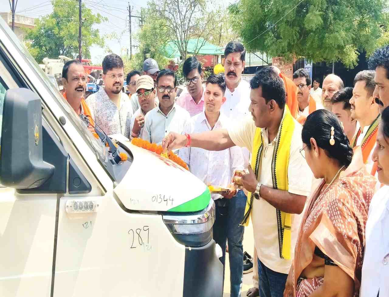 राजिम: विधायक रोहित साहू ने 4 नई 108 एंबुलेंस संजीवनी दिखाई हरी झंडी