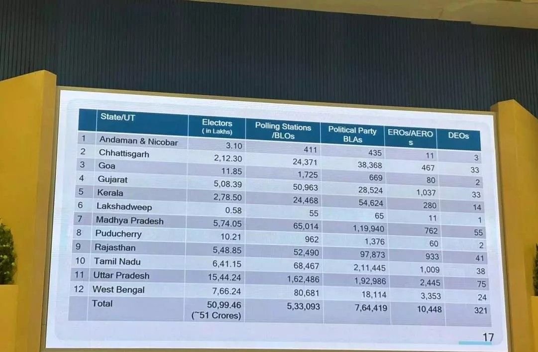 SIR second phase नई दिल्ली। भारत के चुनाव आयोग ने सोमवार को विशेष संक्षिप्त पुनरीक्षण (SIR) के दूसरे फेज की घोषणा की है। इस चरण में छत्तीसगढ़, पश्चिम बंगाल, उत्तर प्रदेश, तमिलनाडु, राजस्थान, मध्य प्रदेश, केरल, गुजरात, गोवा, पुडुचेरी, लक्षद्वीप और अंडमान-निकोबार द्वीप समूह शामिल हैं।