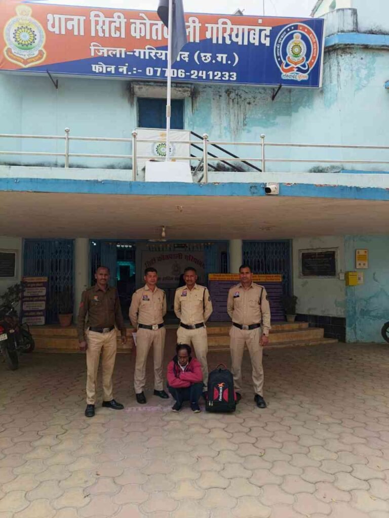 इसी क्रम में थाना सिटी कोतवाली गरियाबंद को मुखबीर से सूचना मिला की ग्राम डोंगरीगांव तिराह के पास एक व्यक्ति अपने पास काला रंग के बैग में अवैध रूप से गांजा मादक पदार्थ रख कर बिक्री हेतु ग्राहक तलाश कर रहा था। मुखबीर के बताये गये स्थान पर पुलिस टीम पहुच कर संदिग्ध व्यक्ति को घेरा बंदी कर पकड़ा गया। जिसका नाम पता पूछने पर अपना नाम संतोश पुजारी पिता स्व केशब पुजारी उम्र 54 वर्ष निवासी ग्राम डुमरगुडा थाना धमगढ़ जिला नुआपाड़ा (उड़ीसा) का रहने वाला बताया। जिसके कब्जे से समक्ष गवाहन के 04 किलो ग्राम अवैध मादक पदार्थ गांजा कीमती 02 लाख रूपये को जप्त कर कब्जा पुलिस लिया गया। आरोपी संतोश पुजारी का कृत्य अपराध धारा 20(ख) एनडीपीएस एक्ट का होना पाये जाने से अपराध पंजीबद्ध कर विवेचना में लिया गया। प्रकरण में विवेचना के दौरान आरोपी को विधिवत गिरफ्तार कर माननीय न्यायालय के समक्ष पेश किया गया।